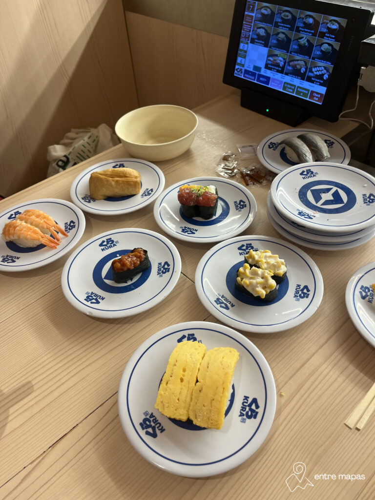 Verás que en muchos restaurantes tienen un escaparate con comida de plástico. Esto es todo un arte en el país, pero además sirve para facilitarte la elección. Fliparás porque parece comida de verdad. También hay muchos restaurantes en los que pides en una máquina y al entrar al restaurante te sirven la comida. En la Isla de Miyajima vimos hasta una máquina expendedora de ostras. Alucinamos.