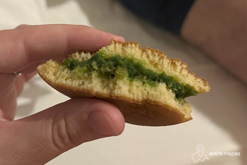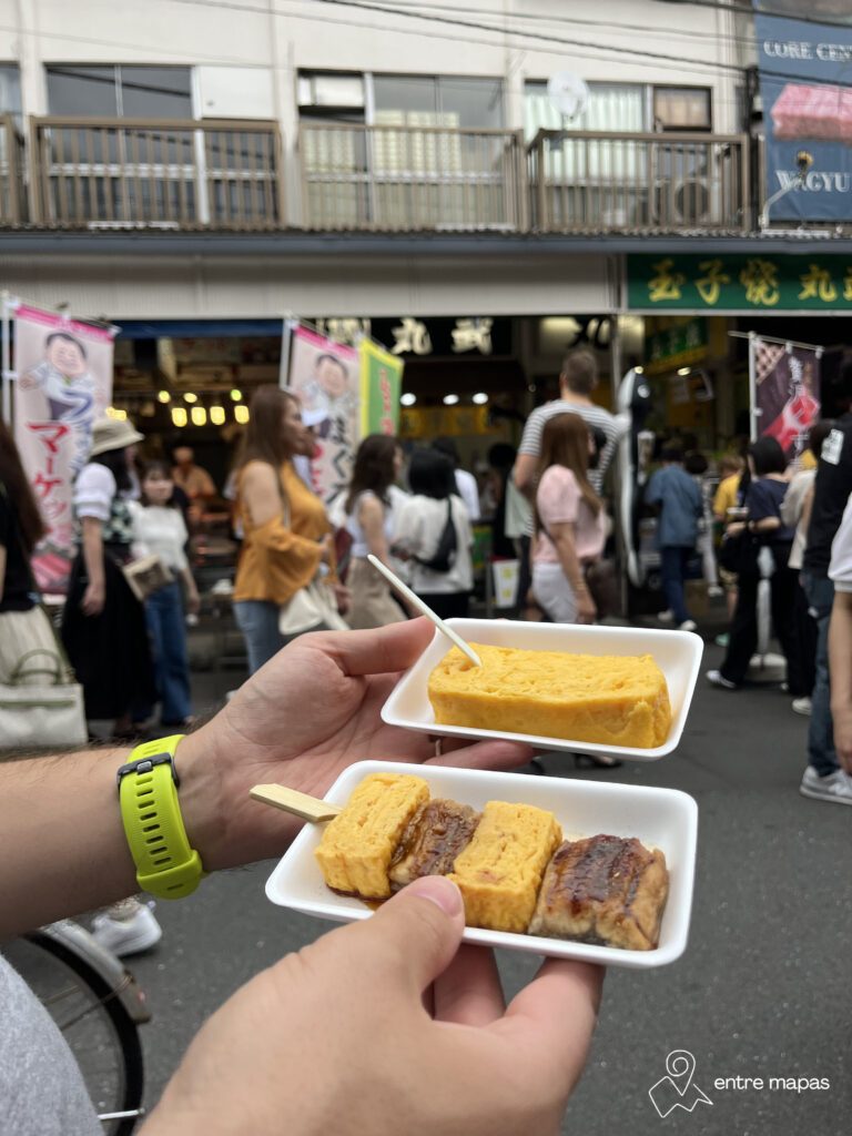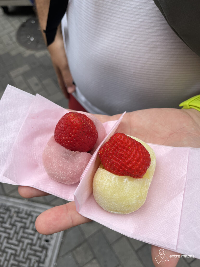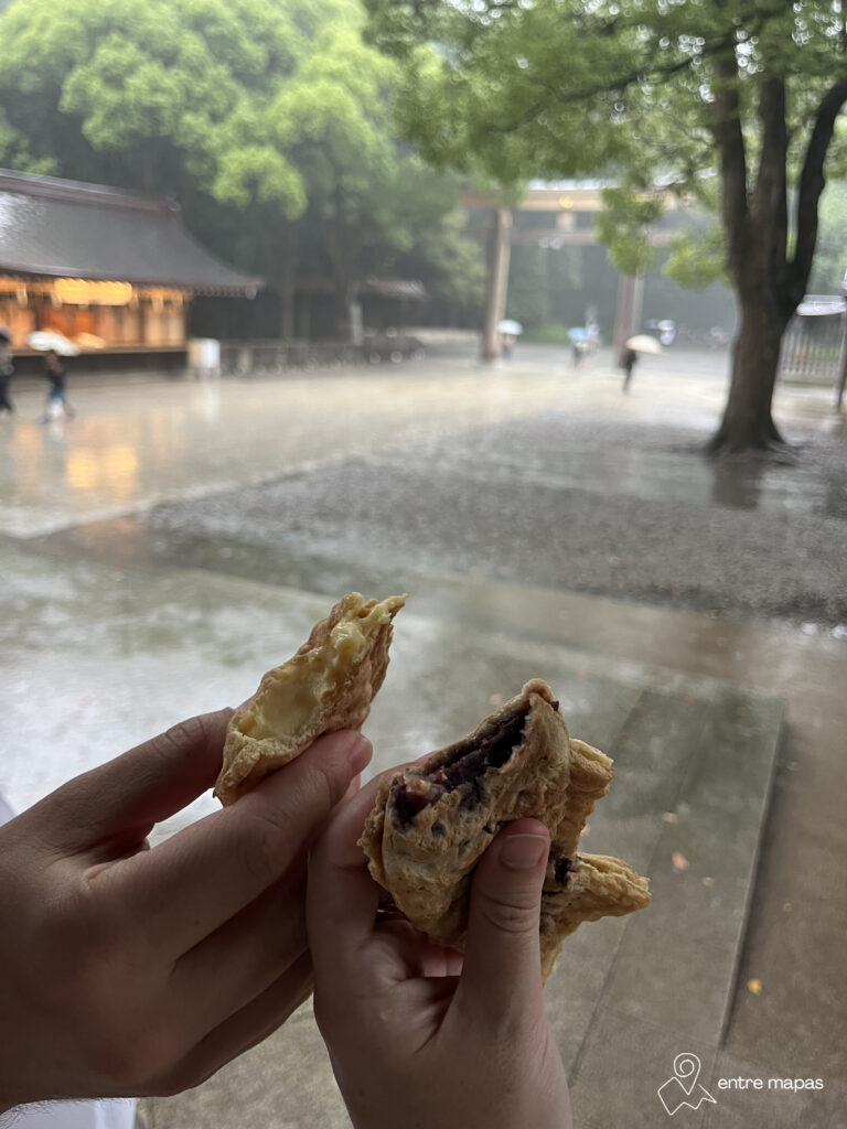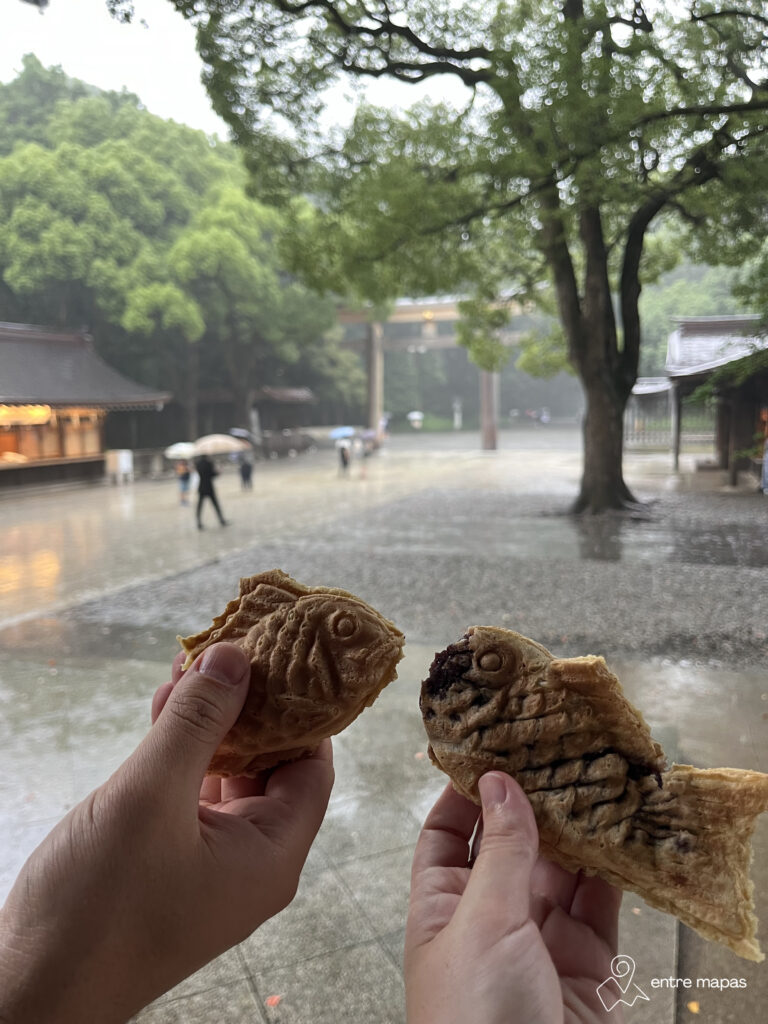 Este bollito con forma de pez se rellena con pasta de judía roja o con una especie de crema pastelera con sabor a vainilla. Puro vicio. Nosotros probamos los de Taiyaki Kanda Daruma Tsukiji en Tokio y no puedo más que recomendártelos.