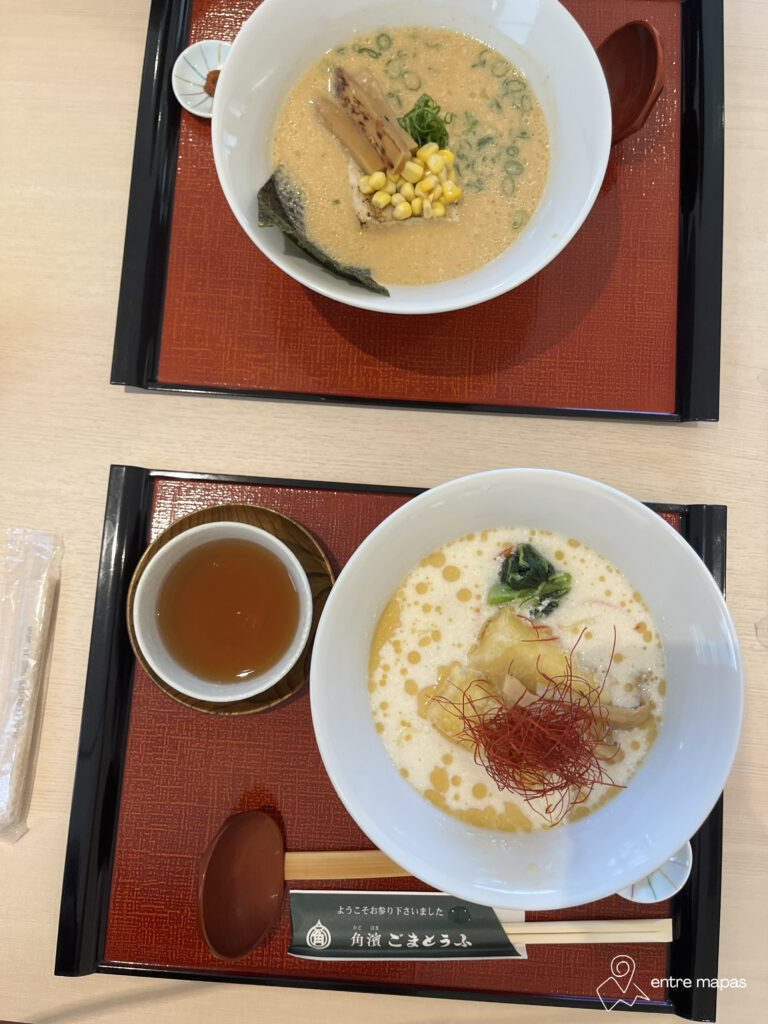 Seguro que llegad@s a este punto estarás pensando, ¿qué me está contando esta tía? Pues bien, te aseguro que el goma tofu es uno de los platos que más he disfrutado en Japón. Y ya no solo yo, que soy vegetariana, sino que también mi pareja, que no lo es, flipó con lo rico que estaba. El goma tofu es una especie de tofu de sésamo, de textura muy cremosa, típico de la zona de Osaka. En Koyasan, en el restaurante Kadohama Goma-tofu, probamos unos noodles vegetarianos con goma tofu que son los causantes principales de querer volver a Japón, no miento.